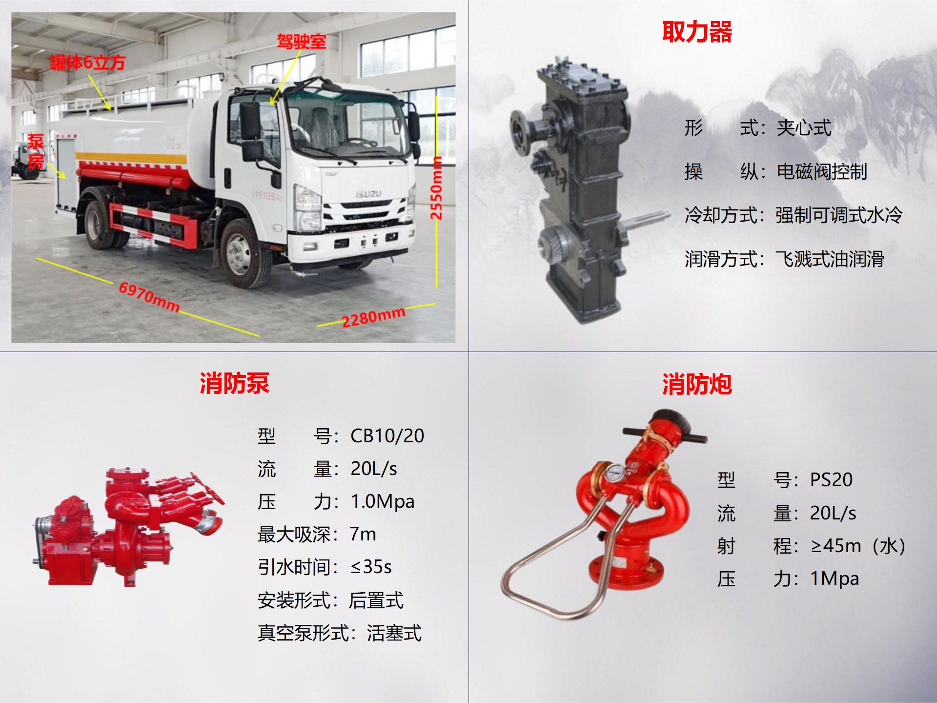五十铃6吨消防洒水车 整车配置参数 | |