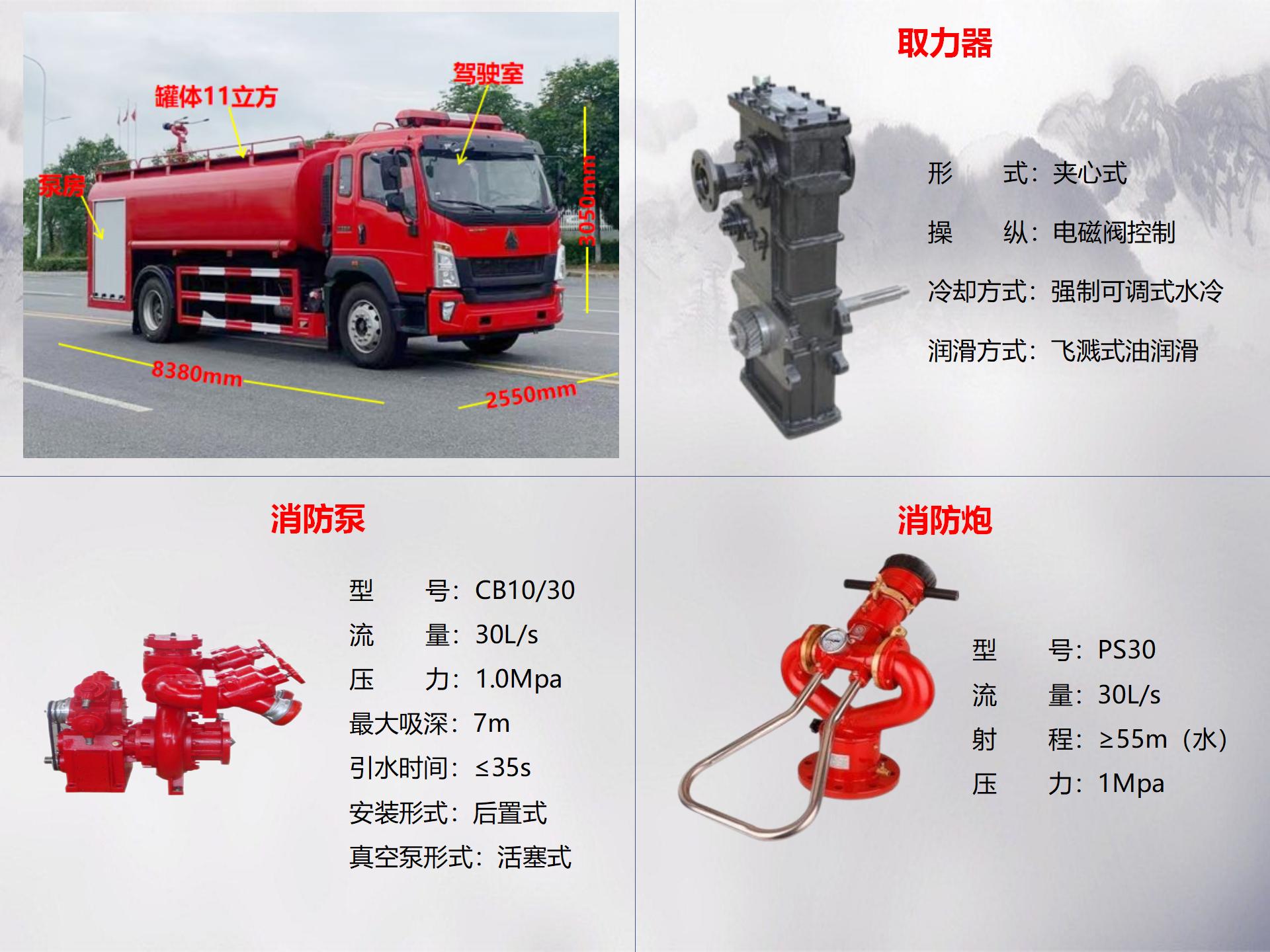 豪沃11吨消防洒水车 整车配置参数 | |